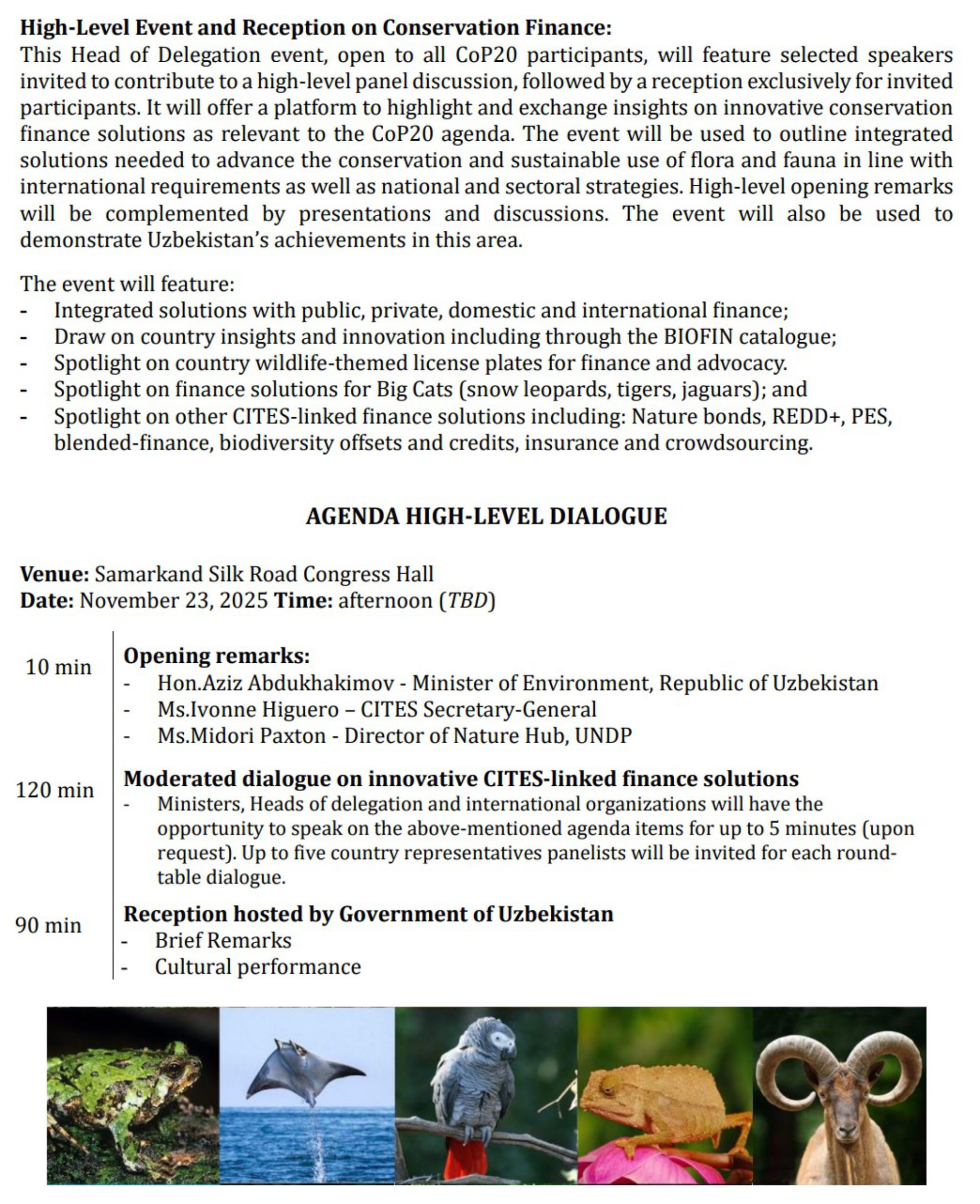 One event is the Head of Delegation Event on Conservation Finance. The document outlines potential finance solutions to address the funding crisis the CITES is in (and has been in for decades), including all the go to ones that have been discussed and/or tested, for some time – nature bonds, blended-finance, biodiversity offsets and credits. All the same phantom solutions that have been previously proposed and can’t deliver what is needed.